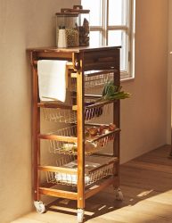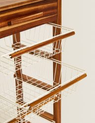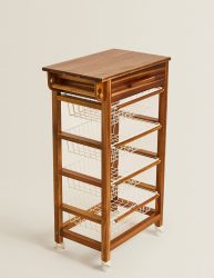 این واحد ذخیرهسازی معمولاً از چهار سطح یا پله تشکیل شده است که به طور متناوب از موادی مانند چوب و فلز استفاده میشود. این سازه اغلب ترکیبی از قفسههای چوبی محکم و تکیهگاهها یا قابهای فلزی را در خود جای میدهد. قفسههای چوبی فضای کافی برای ذخیرهسازی فراهم میکنند، در حالی که چارچوب فلزی پشتیبانی ساختاری و جذابیت بصری ارائه میدهد. طراحی میتواند متفاوت باشد، عناصر چوب و فلز مکمل یکدیگر هستند تا یک واحد هماهنگ و کاربردی ایجاد کنند. طراحی چند طبقه امکان سازماندهی و نمایش مؤثر اقلام مختلف را فراهم میکند. هر سطح بستری برای چیدمان و نمایش اقلامی مانند کتاب، دکور، گیاهان یا سطلهای ذخیرهسازی فراهم میکند که هم کارایی و هم جذابیت زیباییشناختی را ارائه میدهد. این واحدها همهکاره و مناسب برای اتاقها و اهداف مختلف هستند. میتوان از آنها در اتاقهای نشیمن برای نمایش قطعات تزئینی، در دفاتر خانگی برای سازماندهی کتابها و اسناد یا در آشپزخانهها برای نگهداری شیشهها یا نمایش ظروف پخت و پز استفاده کرد. ترکیب عناصر چوب و فلز ظاهری مدرن و صنعتی به واحد ذخیرهسازی میبخشد و آن را به یک افزودنی شیک به طراحیهای داخلی مدرن یا التقاطی تبدیل میکند.